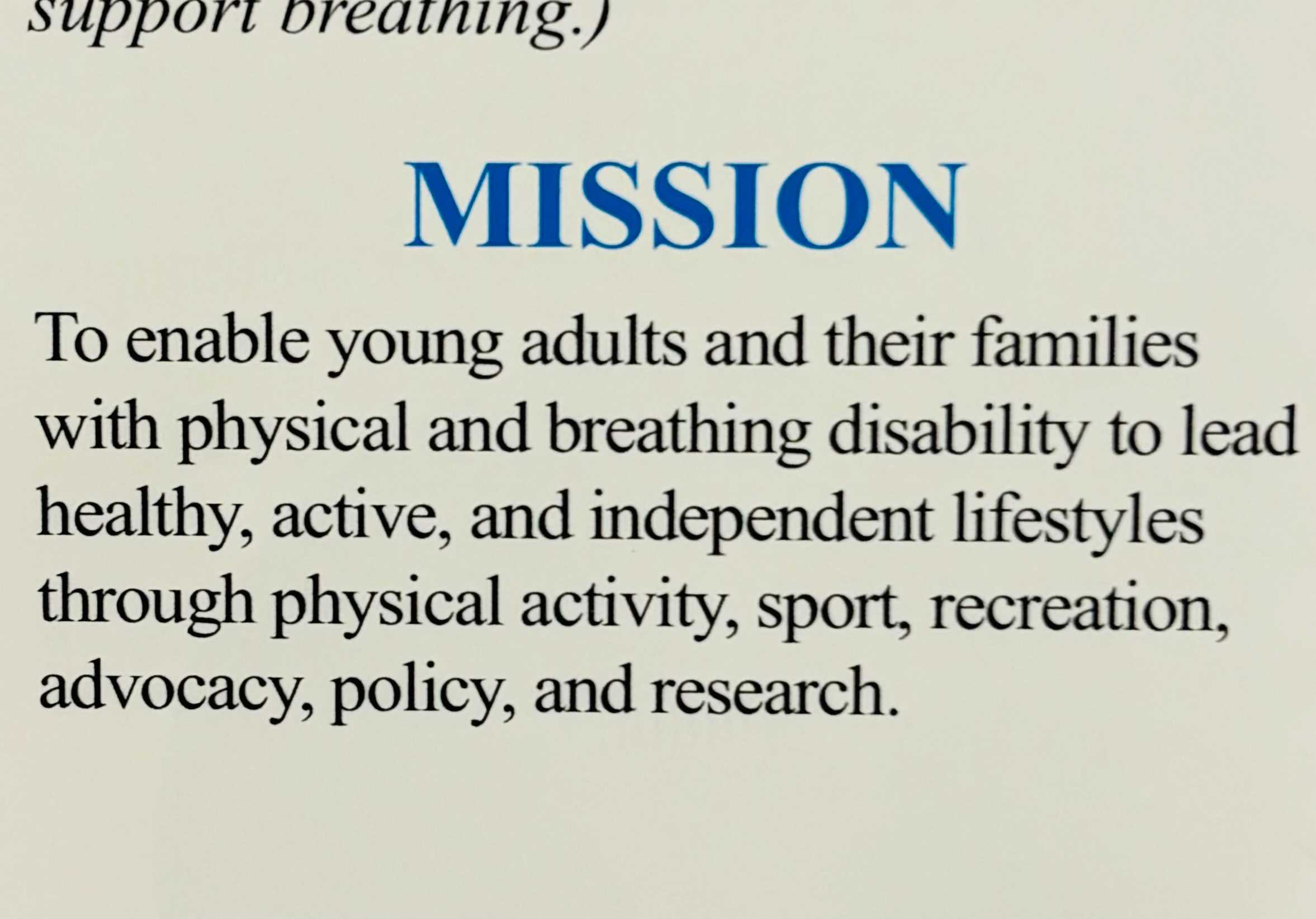 To enable young adults and their families with physical and breathing disability to lead healthy, active and independent lifestyles through physical activity, sport