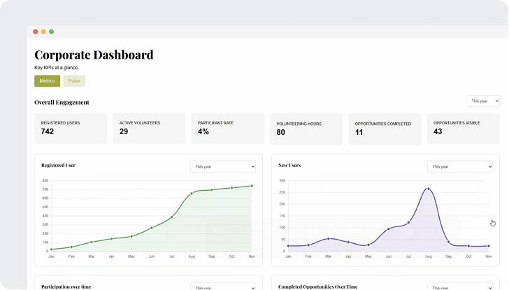 Advanced capabilities that help you automate operations, activate employees, and measure impact—so your CSR program runs smoothly at scale.