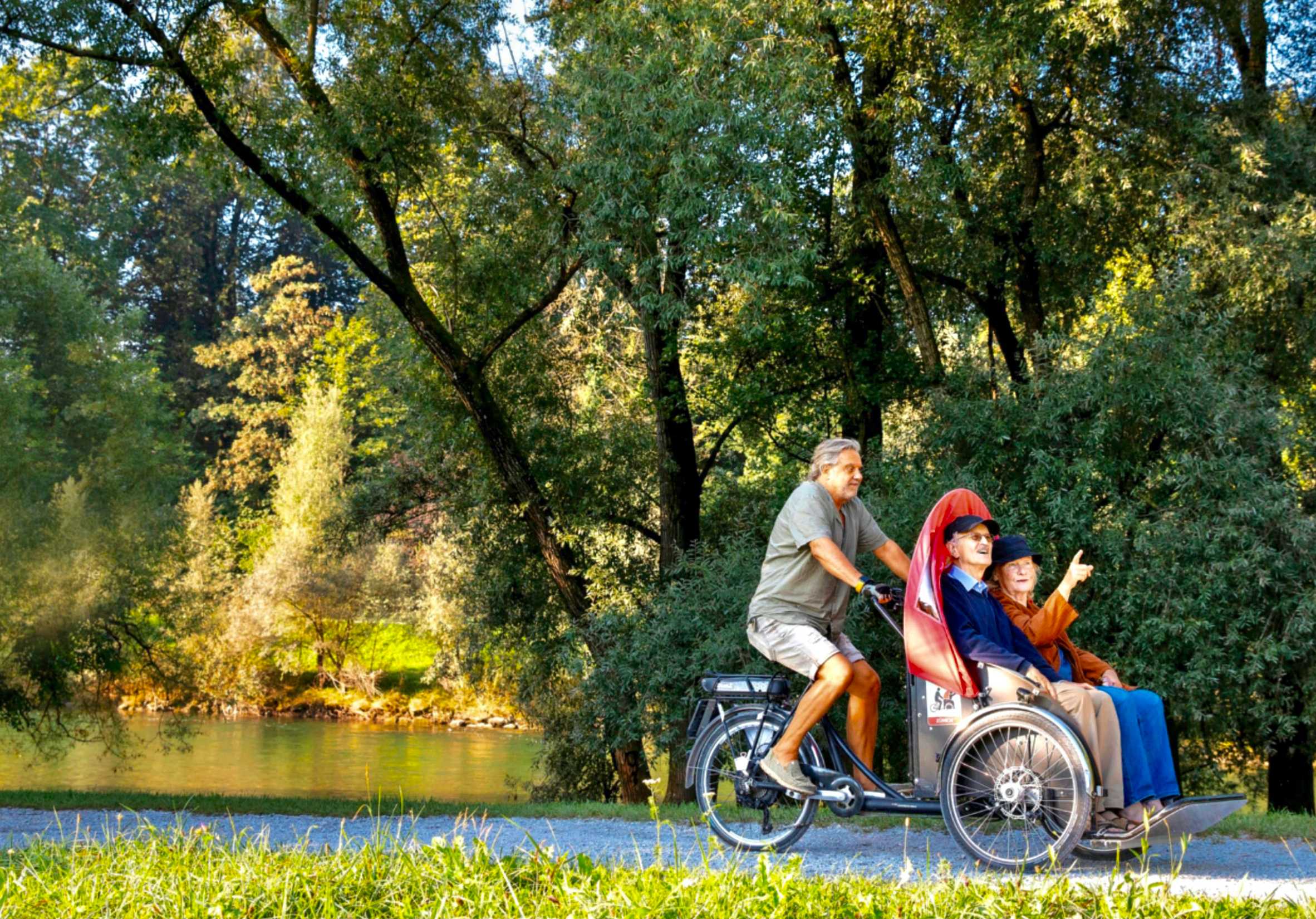 Wir laden Bewohner*innen von Alters- und Pflegezentren dazu ein, auf unseren Rikschas ihre Wohnumgebung neu zu entdecken, dabei ihre Lebens- und Alltagsgeschichten mit uns zu teilen
